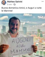 Nel giorno della Festa della Mamma il leader della Lega Matteo Salvini ha pubblicato sul suo profilo Facebook una foto in cui teneva in mano un foglio con gli auguri per le mamme.